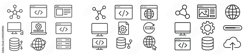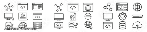 The watermark will not be included on Wall mural.: Collection of web icons in line style featuring computers, data, networks, and user interface elemen