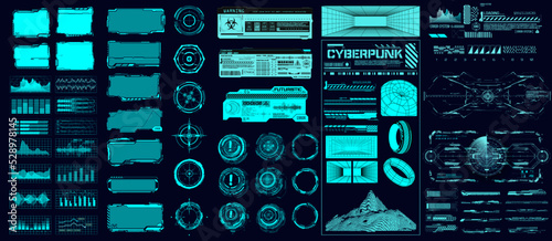 The watermark will not be included on Wall mural.: Collection sci-fi digital interface hud elements mega set pack - user interface, frame screens - blue