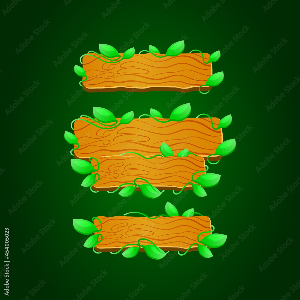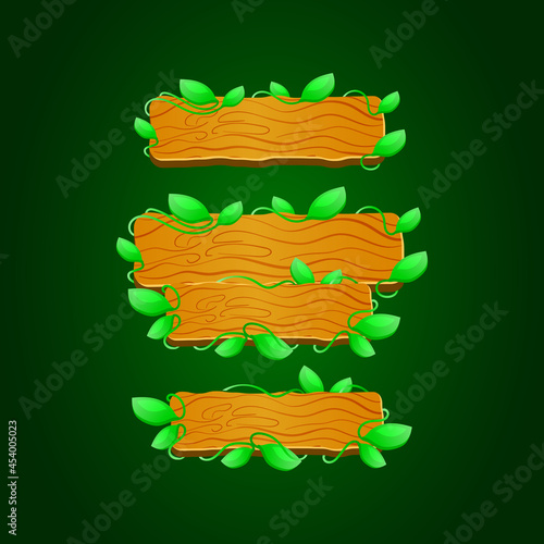 Wall mural collection set of wooden with branch leaf banner board template for game ui asset elements