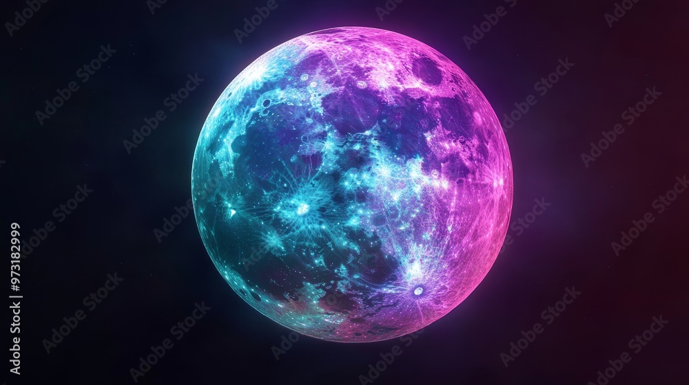 The watermark will not be included on Wall mural.: Color 3d model of the moon with bright tints on a dark background