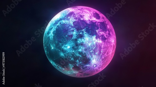 Color 3d model of the moon with bright tints on a dark backgroundWall mural