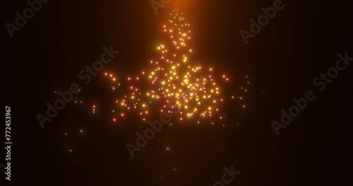 Wall mural colored lights raining down from above from a source of orange light. particles bouncing off an invi