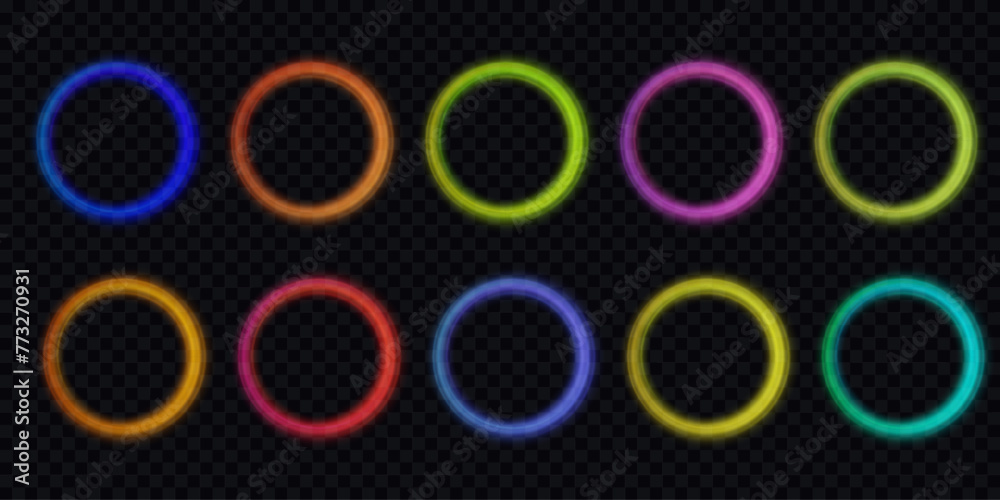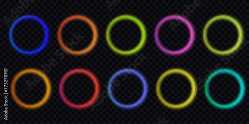 Wall mural colored neon ovals or circles for swirl shiny rings light effect. glow luminous glitter shimmer trai