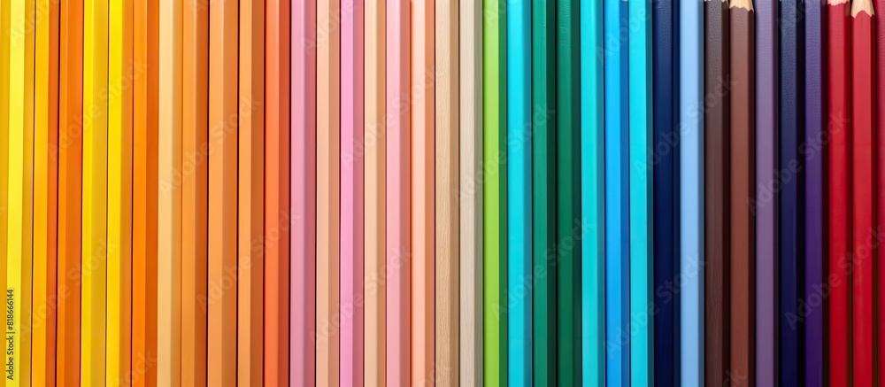 The watermark will not be included on Wall mural.: Colored pencils arranged on a blank background creating an image with ample copy space 92 characters