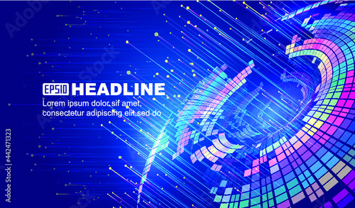The watermark will not be included on Wall mural.: Colored spiral blocks emit light on internet tech tech background -