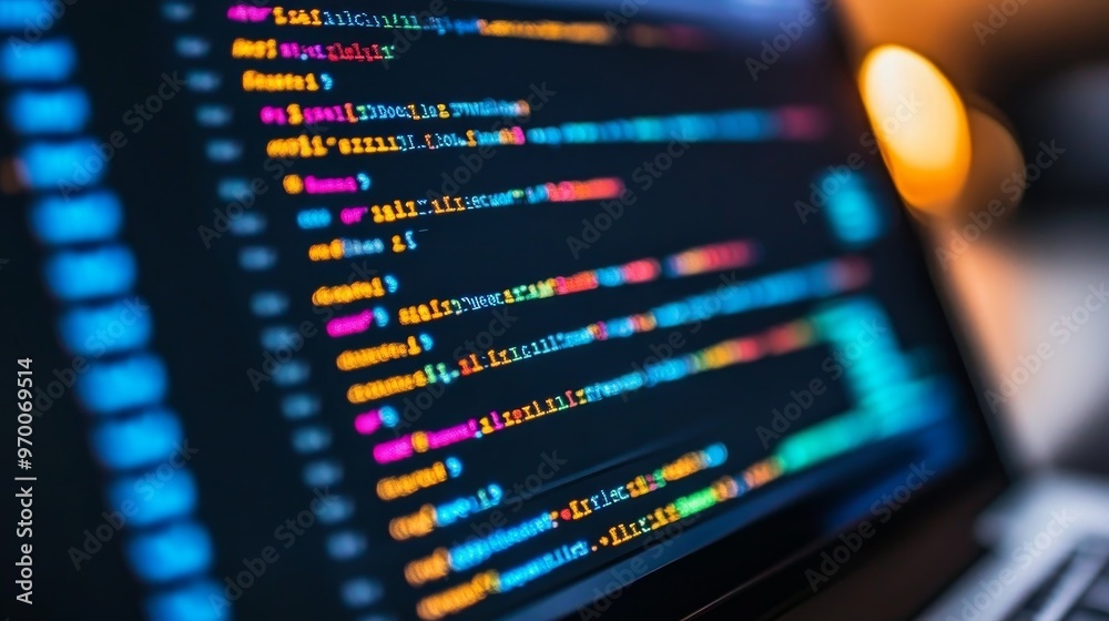 Wall mural colorful, abstract programming code on a computer screen. the future of software development. - Wall murals Wall mural colorful, abstract programming code on a computer screen. the future of software development. - Wall murals