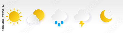 Wall mural : Colorful 3d soft ui weather icons set fill style, weather icons isolated on white background - clouds