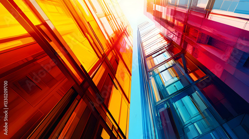 The watermark will not be included on Wall mural.: Colorful abstract background featuring vibrant vectors in a 3d grid space with dynamic visual elemen