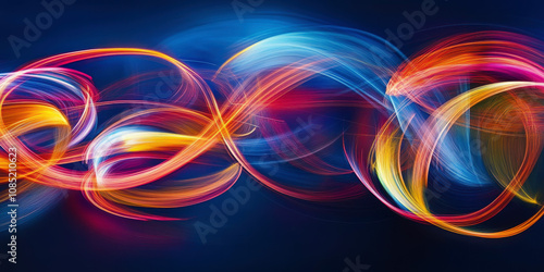 Wall mural colorful abstract background with dynamic light trails on dark canvas