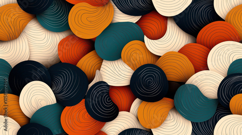 Wall mural : Colorful abstract background with overlapping swirled shapes and curved patterns in shades of teal,