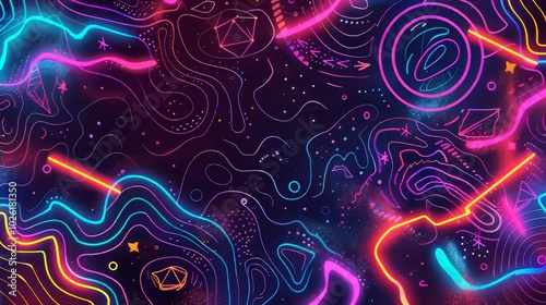 The watermark will not be included on Wall mural.: Colorful abstract background with vibrant neon lines creating a dynamic design against a dark backdr