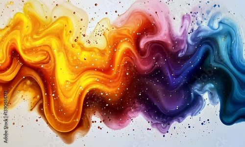 Wall mural : Colorful abstract fluid art with swirling vibrant patterns and sparkles creating a dynamic backgroun