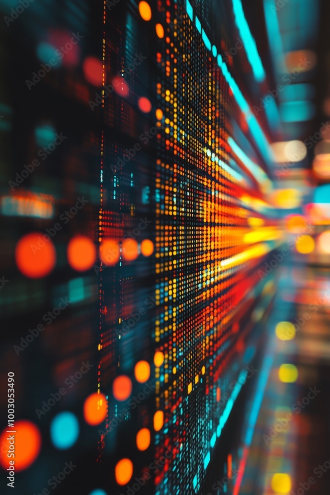 Wall mural : Colorful abstract light patterns create a stunning visual effect in a digital space at night