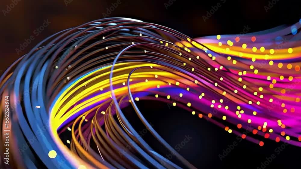 Wall mural : Colorful abstract lines and waves create dynamic flow of light and energy, evoking movement and crea