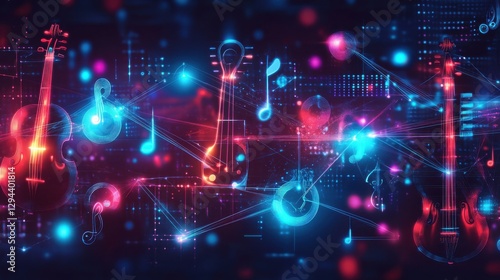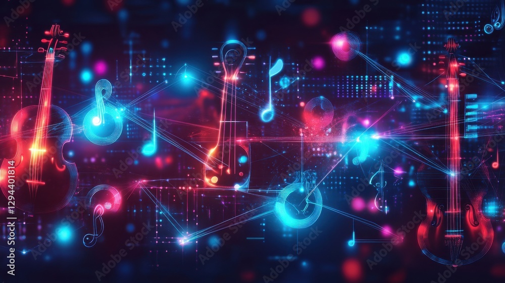 The watermark will not be included on Wall mural.: Colorful abstract music background with instruments and notes