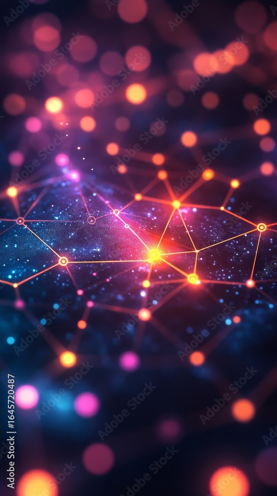 Wall mural colorful abstract network design showcasing connectivity and digital technology in a vibrant setting - Wall murals Wall mural colorful abstract network design showcasing connectivity and digital technology in a vibrant setting - Wall murals