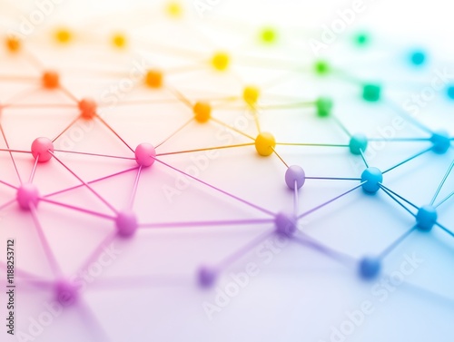 Wall mural : Colorful abstract network of interconnected nodes and lines