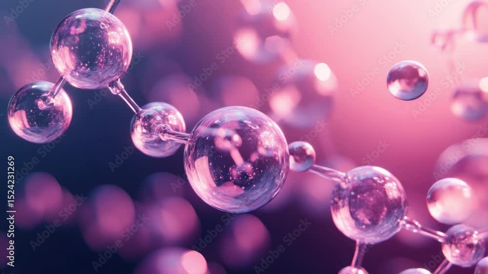 The watermark will not be included on Wall mural.: Colorful abstract representation of molecular structure with glowing spheres and bokeh background 4k