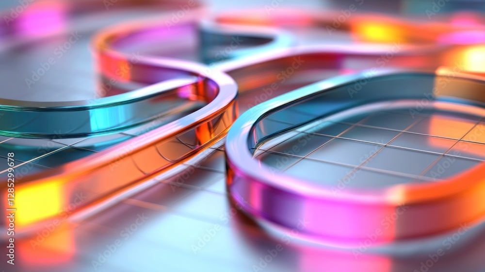 The watermark will not be included on Wall mural.: Colorful abstract shapes intertwined on a reflective surface, creating a vibrant visual effect