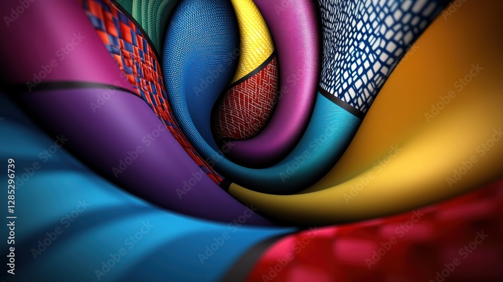 The watermark will not be included on Wall mural.: Colorful abstract swirl of textures and patterns creating a vibrant visual tunnel effect