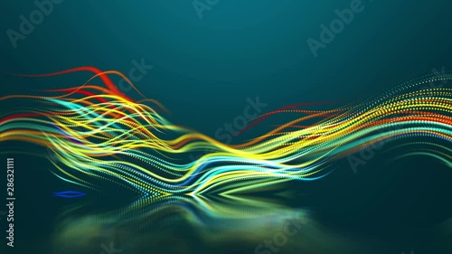 Wall mural : Colorful abstract vector ribbon mesh structure technology wavy animated background - uhd 4k seamless