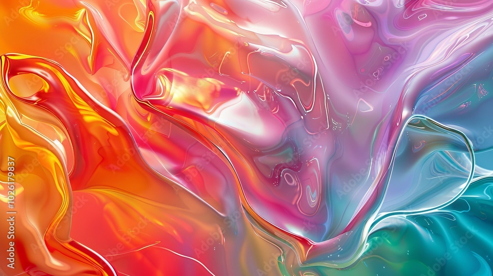 The watermark will not be included on Wall mural.: Colorful abstract wave pattern creating a vibrant visual experience with rich hues and flowing textu