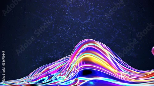 The watermark will not be included on Wall mural.: Colorful abstract waves are flowing on a dark glittery background, creating a mesmerizing and vibran