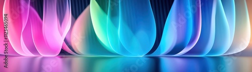 Wall mural : Colorful abstract waves creating a vibrant background with smooth gradients and reflections -