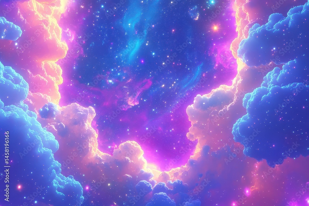 Wall mural : Colorful animated space nebula background showcasing vibrant hues and celestial wonders, a colorful