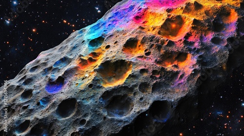 Wall mural colorful asteroid surface in outer space with textured craters and stars in the background copy spac - Wall murals Wall mural colorful asteroid surface in outer space with textured craters and stars in the background copy spac - Wall murals