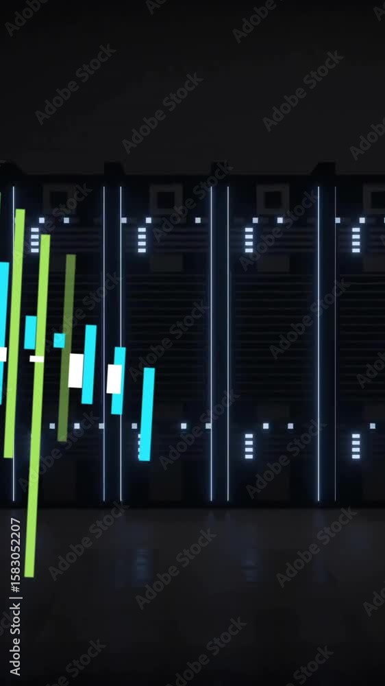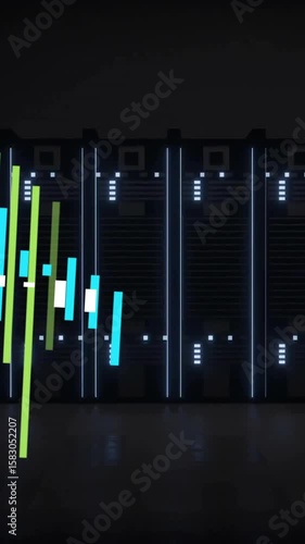 The watermark will not be included on Wall mural.: Colorful bar graph animation over server racks in data center