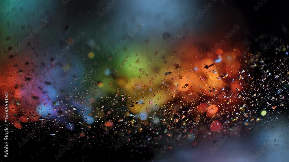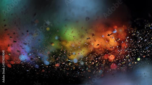 The watermark will not be included on Wall mural.: Colorful bokeh lights creating a vibrant and abstract backdrop seen through a rain covered glass sur