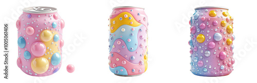 Wall mural : Colorful cans with bubbles and patterns isolated on transparent background