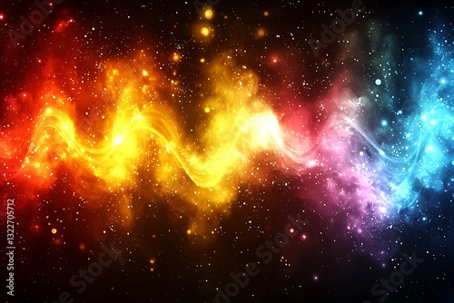 Wall mural : Colorful celestial forms and stars appear across a dark background