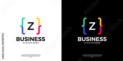 Colorful coding logo icon - letter z logo with modern code programing symbol logo design - Wall mural