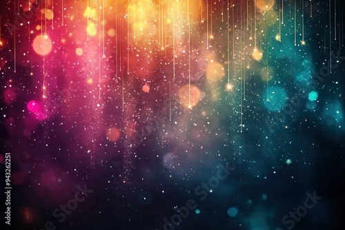 The watermark will not be included on Wall mural.: Colorful cosmic background with hanging stars and glowing particles generative ai