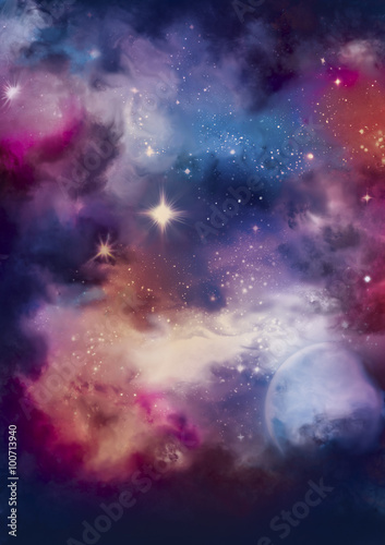 Wall mural : Colorful cosmos background with stars and a planet - for posters, banners, flyers, cards -