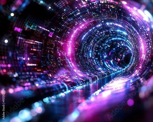The watermark will not be included on Wall mural.: Colorful digital tunnel with vibrant lights and abstract patterns, creating a futuristic and immersi