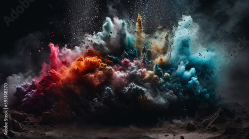 Wall mural : Colorful explosions: a photorealistic world of liquid and paint splatters, glitter and confetti expl