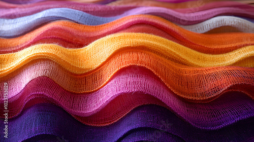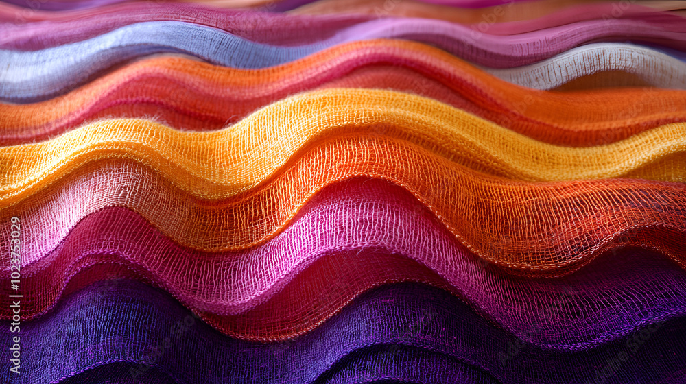 The watermark will not be included on Wall mural.: Colorful fabric waves creating a vibrant display of textures in soft hues and gradients at a textile