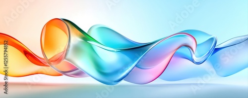 The watermark will not be included on Wall mural.: Colorful flowing ribbons creating an abstract wave on a soft gradient background -