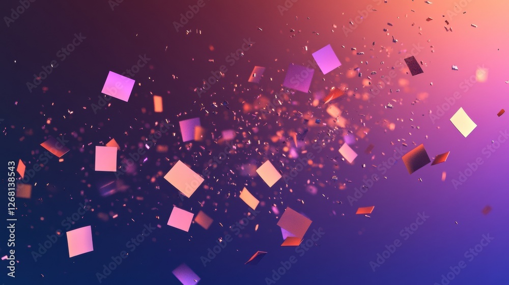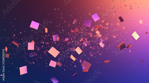 Wall mural : Colorful geometric particles floating through a vibrant gradient background in a digital abstract co