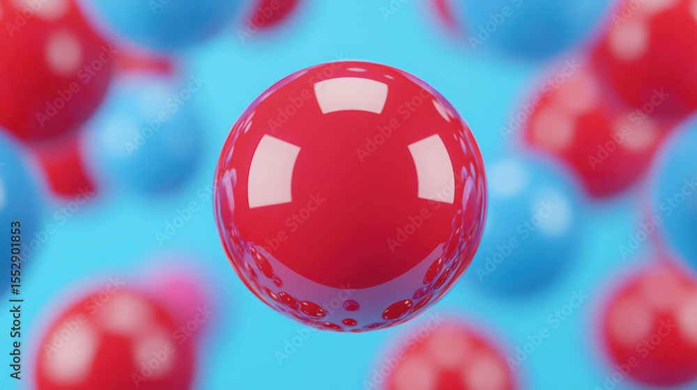 The watermark will not be included on Wall mural.: Colorful glossy spheres floating in a bright blue background creating a modern and dynamic abstract