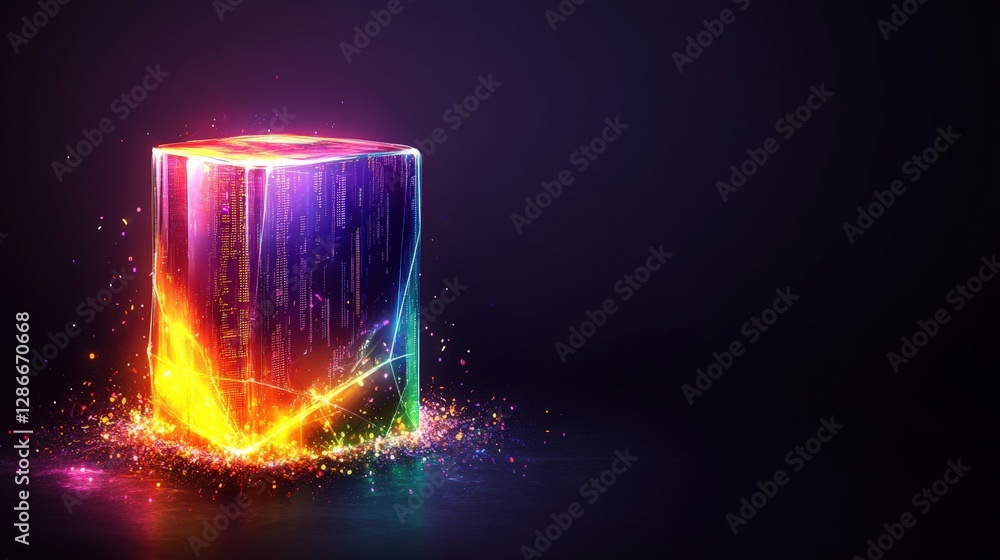 The watermark will not be included on Wall mural.: Colorful glowing cube representing software development and digital technology concepts in a modern
