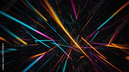 Colorful glowing triangles abstract in black background copy space designWall mural