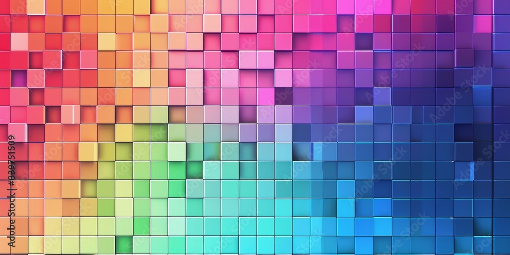 The watermark will not be included on Wall mural.: Colorful gradient cube pattern in a grid formation
