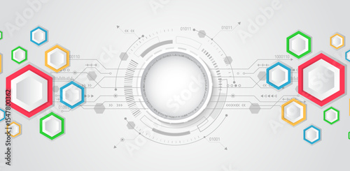 Wall mural colorful hexagonal tech background with abstract digital circuit elements. perfect for presentations