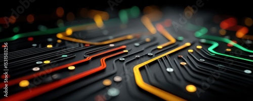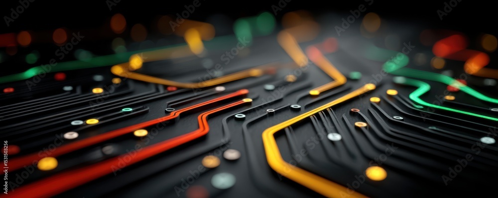 Wall mural colorful illuminated circuit board pattern with intricate design details - Wall murals Wall mural colorful illuminated circuit board pattern with intricate design details - Wall murals