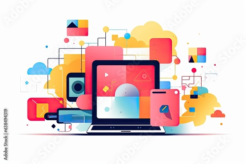 The watermark will not be included on Wall mural.: Colorful laptop item with minimal shapes pattern on white background - machine learning - generative a