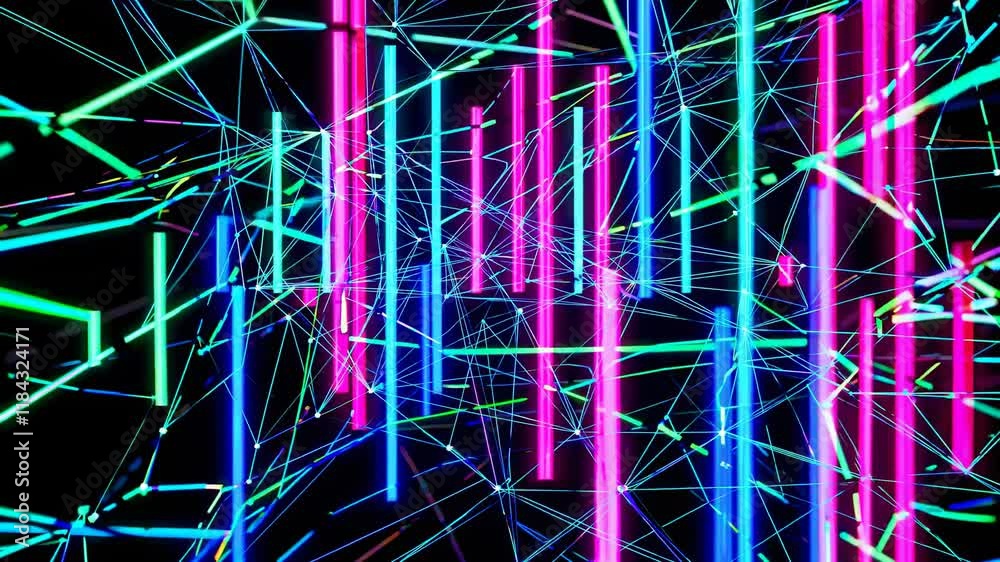 Wall mural colorful light display creates intricate patterns in a digital space - Wall murals Wall mural colorful light display creates intricate patterns in a digital space - Wall murals